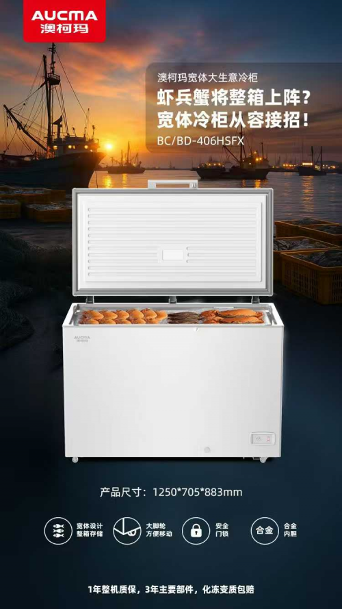 针对不同圈层用户的囤鲜特点,澳柯玛冷柜打造出多场景专业冷冻解决方案,今年推出的BC/BD-406HSF/506HSF/730HSF系列宽体大生意系列冷柜,满足各类人群的储鲜需求,家庭、商户都可以使用,全方位解决囤鲜难题。