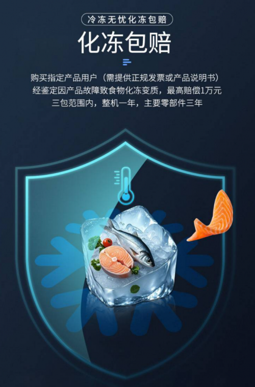 值得一提的是,此系列冷柜虽然容量大、冷冻能力大,耗电量却并不大,均为国家一级能效水平,一天仅需一度电,大大降低了长期使用的成本。而且1年整机质保,化冻包赔,好冷柜才是长期使用的好伙伴!