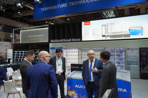 澳柯玛亮相2026年德国Euroshop零售展,成为澳柯玛拓展欧洲市场的重要契机。作为全球零售行业规模最大、影响力最强的国际展会之一,该展会为澳柯玛提供了与全球合作伙伴深度对接的高端平台。此次参展,澳柯玛结合商用冷链产品使用场景,搭建了商超、便利店两大场景化展示空间,展出全透玻璃门整机风幕柜、智能冷冻柜等多款新品,凭借其精准控温、高效节能、智能便捷的优势,完美适配欧洲高端商超、烘焙连锁等场景需求,赢得了欧洲零售商的广泛青睐。